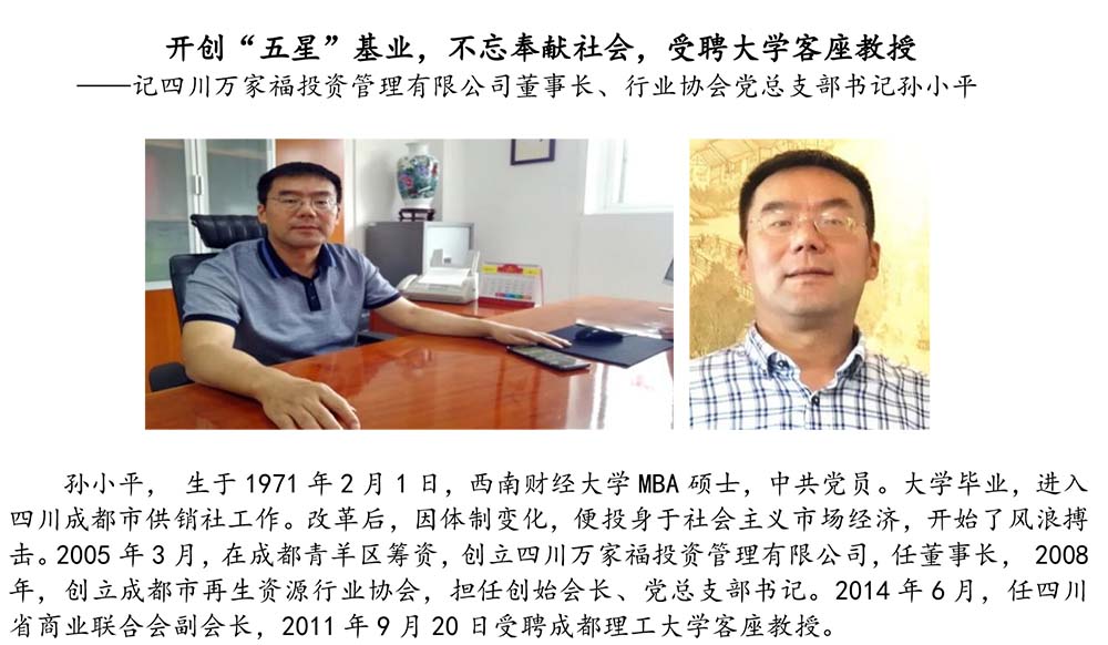 开创“五星”基业,不忘奉献社会,受聘大学客座教授 ——记四川万家福投资管理有限公司董事长、行业协会党总支部书记孙小平