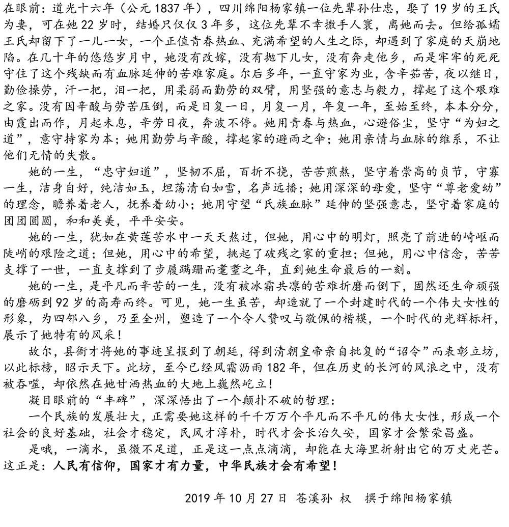 一幅荡气回肠而又催人泪下的“节孝坊”联